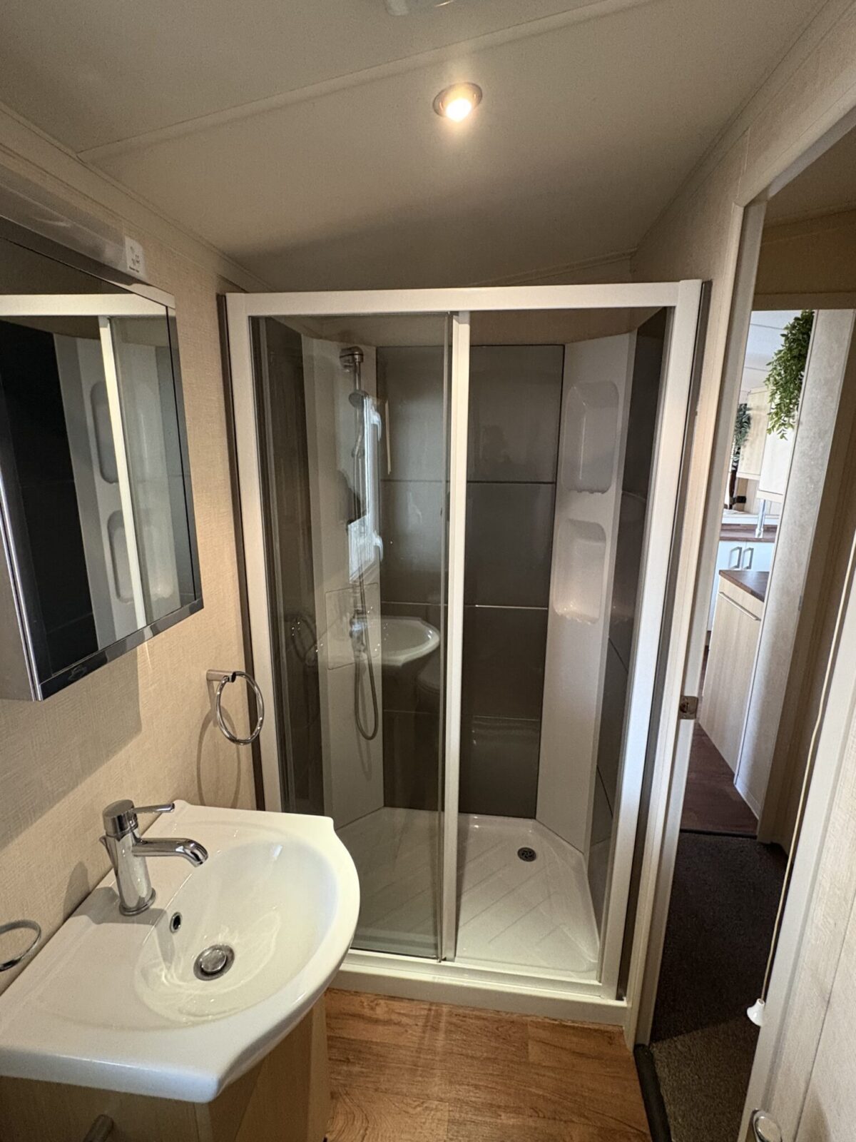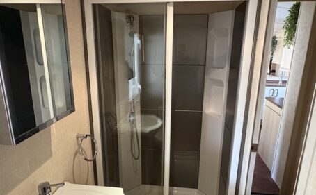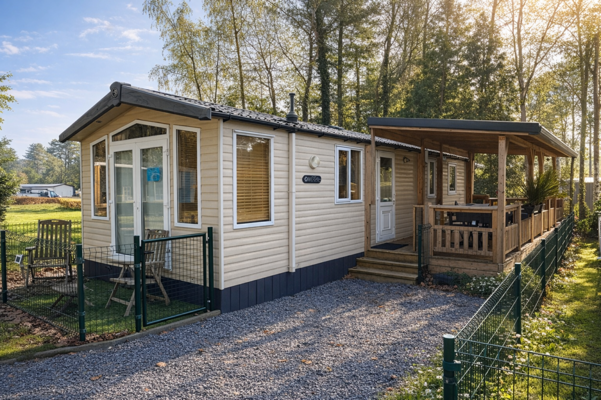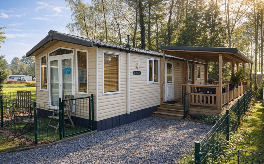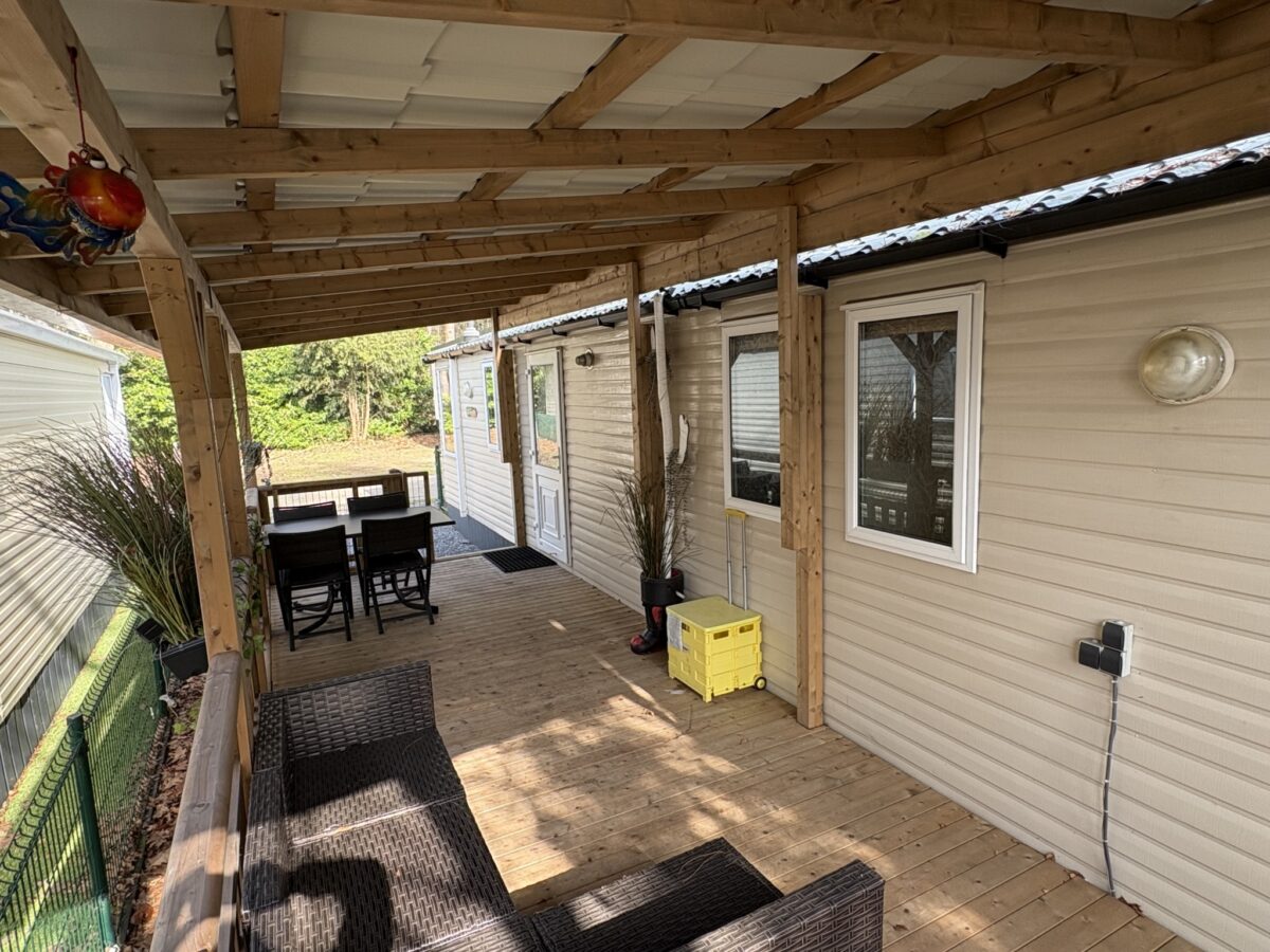 Dieser schöne Mobilheim ist bereits auf Parzelle 183 im Ferienpark Breebos aufgestellt und angeschlossen.