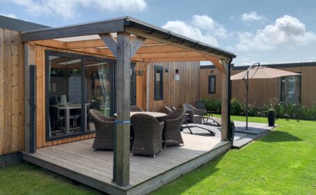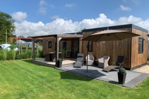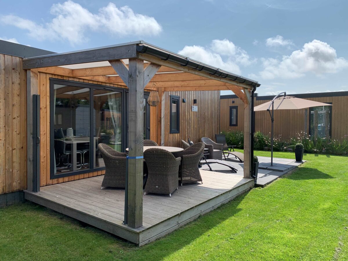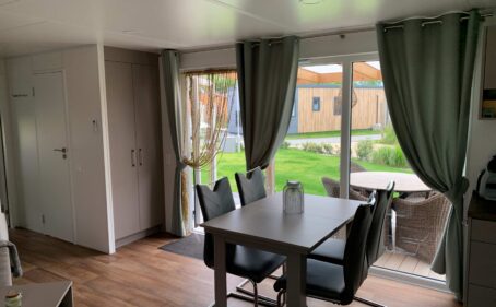 Le chalet se trouve sur la plus belle et l'une des plus grandes parcelles du parc, ce qui vous permet de profiter du soleil toute la journée. Le chalet dispose d'une grande terrasse extérieure et d'un auvent de 4m x 3m avec un brise-vent rétractable. La terrasse extérieure est spacieuse et peut accueillir une grande table et éventuellement un coin salon séparé. Le chalet dispose d'un grand débarras de 3m x 2m, dans lequel se trouvent une machine à laver et un sèche-linge. Le grand jardin a un design caractéristique de la Zélande avec des pelouses de plage, des poteaux en bois, des coquillages et un aspect chaleureux. Vous pouvez trouver une place au soleil ou à l'ombre à tout moment de la journée, selon vos préférences. Vu du chalet, son emplacement dans le parc crée une généreuse sensation d'espace.Ce chalet offre une oasis de paix, de confort et de commodité pour vos vacances. Le chalet (non fumeur) dispose de deux chambres et d'une salle de bains luxueusement équipée. La chambre principale est équipée d'un lit double et la plus petite de deux lits jumeaux. Dans le salon, il y a un cinquième lit pour une personne.