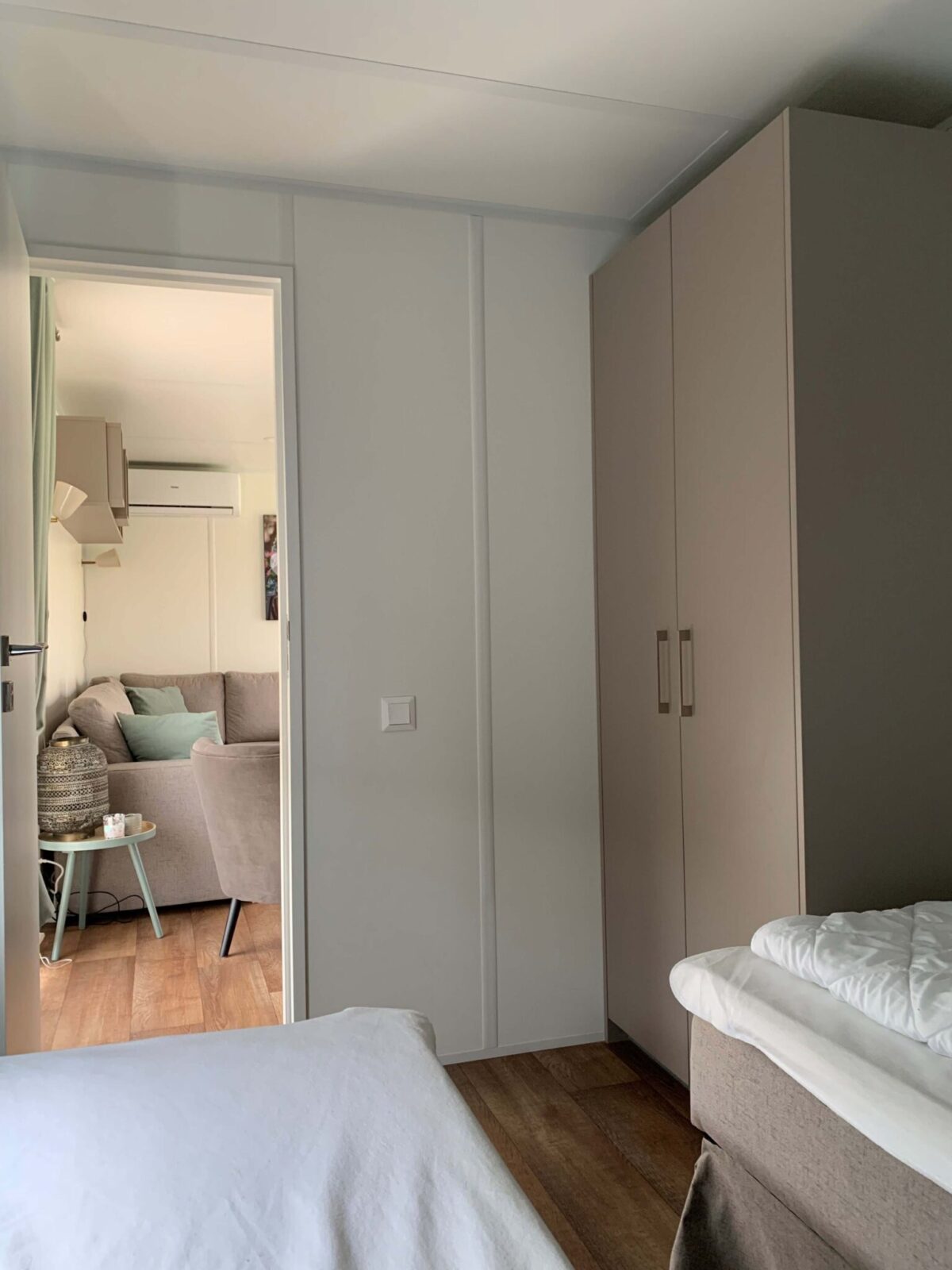 - Chambre à coucher 1 avec lits à sommier tapissier 2 x 80 x 200, 1 x armoire haute et large.