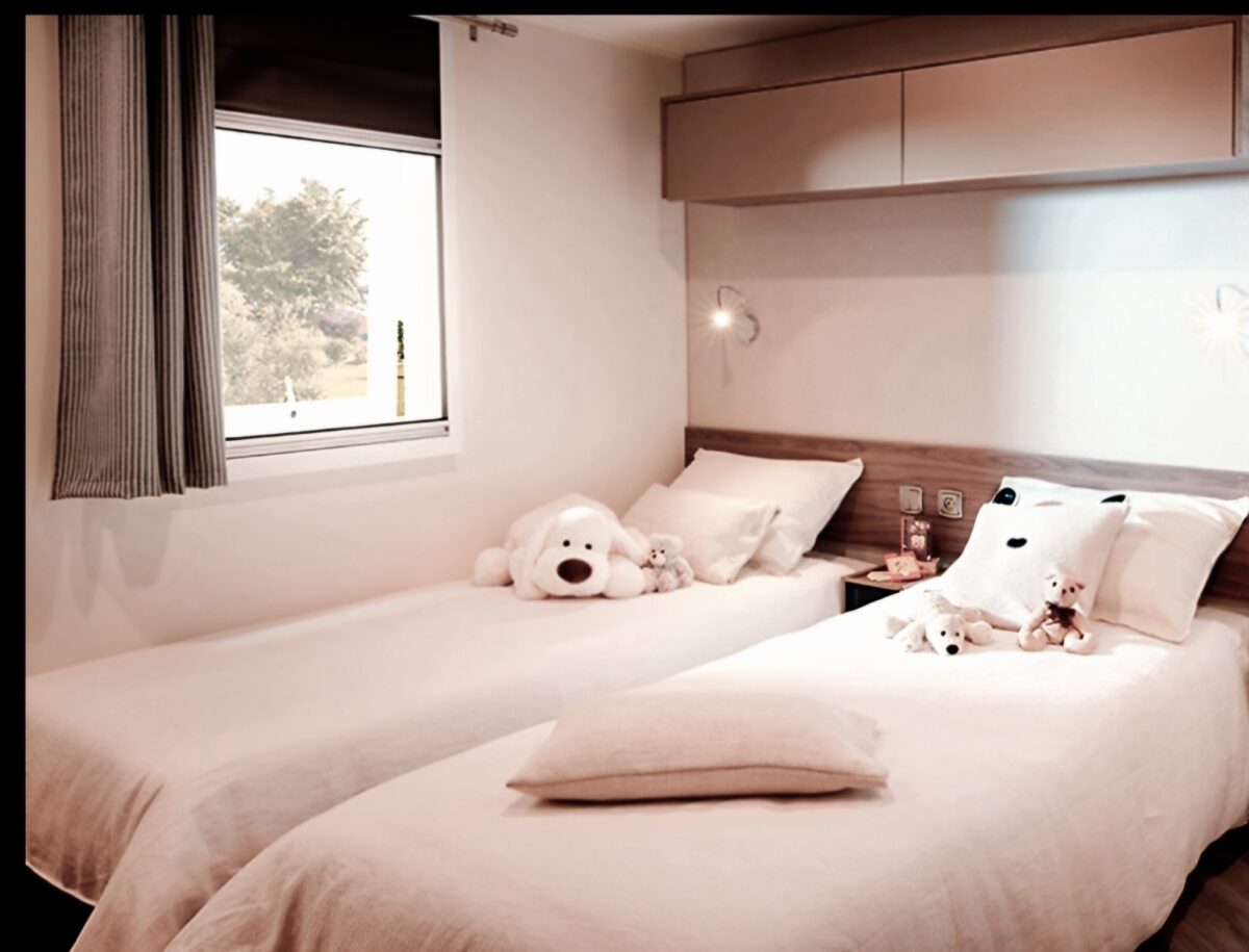 - Trois chambres, dont une avec un lit double, les autres avec deux lits simples chacune. Le salon dispose d'un canapé convertible en lit double (jusqu'à 8 couchages au total). Une fois le canapé déplié, vous pouvez vous détendre et regarder la télévision, les jambes surélevées...