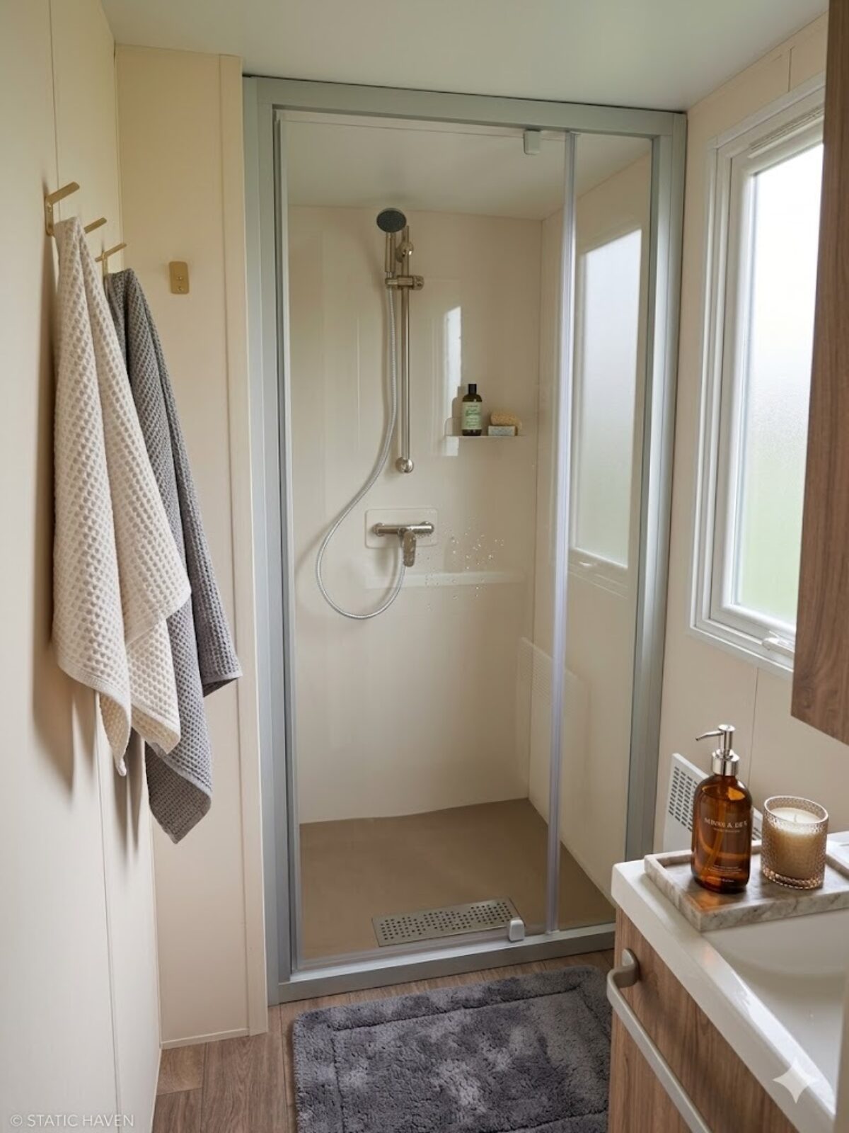 • Douchebak 100 x 80 cm met zijdezacht oppervlak en extra vlakke drempel.