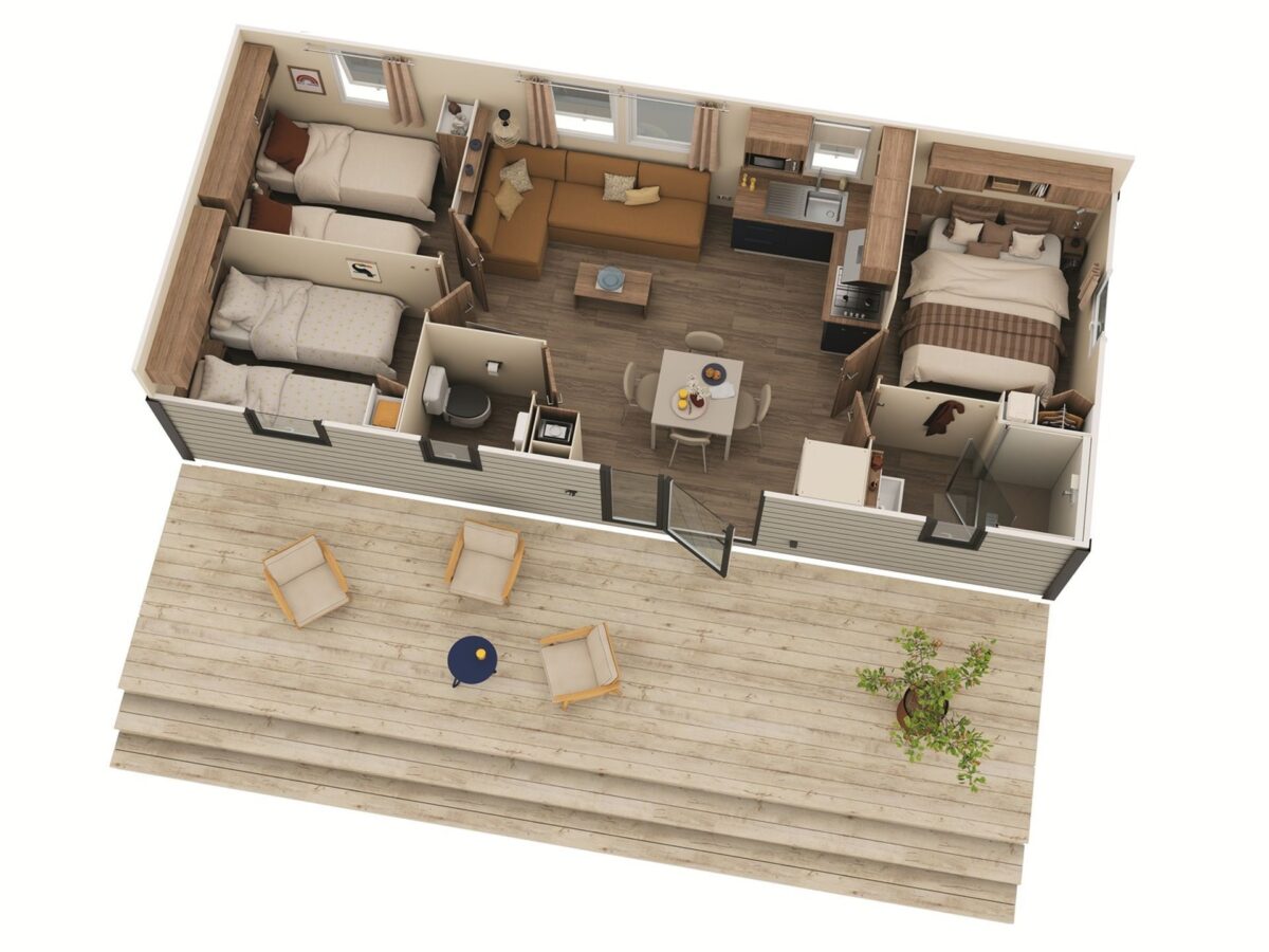 Met de IRM Casita haal je het echte vakantiegevoel in huis. De moderne afwerking, ruime leefruimte en grote panoramische ramen zorgen voor een lichte en gezellige plek om te ontspannen. Ideaal voor wie wil genieten van een eigen verblijf aan de kust op Blankenberge of Bredene!